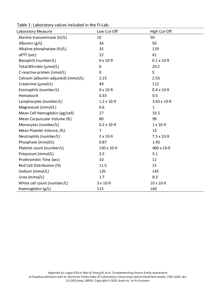 ..we created a frailty index from routine admission laboratory investigations (FI-Laboratory) linked to data comprising hospital outcomes.