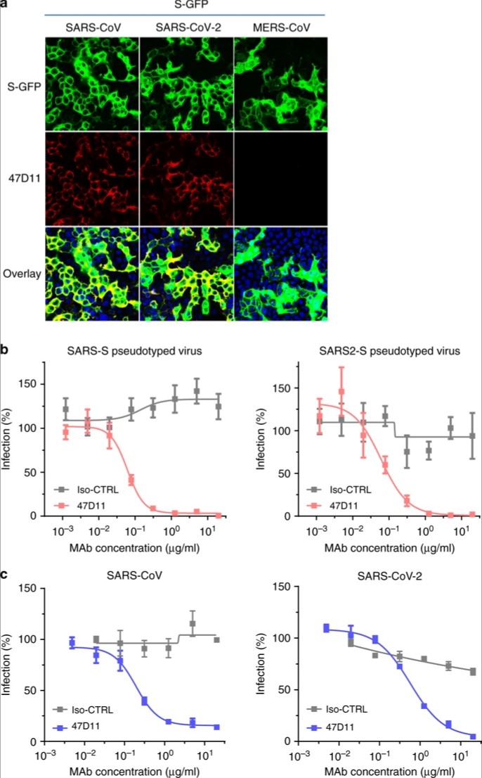 The emergence of the novel human coronavirus SARS-CoV-2 in Wuhan, China has caused a worldwide epidemic of respiratory disease (COVID-19). Vaccines and targeted therapeutics for treatment of this disease are currently lacking. Here we report a human monoclonal antibody that neutralizes SARS-CoV-2 (and SARS-CoV) in cell culture. This cross-neutralizing antibody targets a communal epitope on these viruses and may offer potential for prevention and treatment of COVID-19.