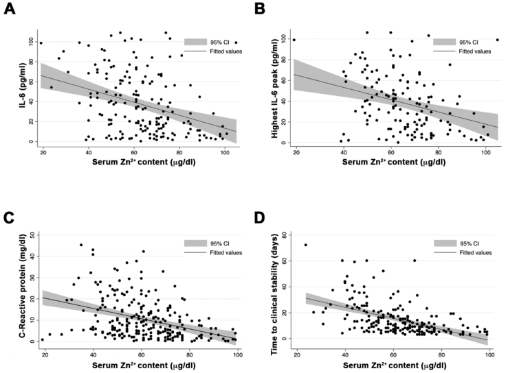 We hypothesize that serum zinc content (SZC) influences COVID-19 disease progression, and thus might represent a useful biomarker. Methods: We ran an observational cohort study with 249 COVID-19 patients admitted in Hospital del Mar. We have studied COVID-19 severity and progression attending to SZC at admission. In parallel, we have studied severe acute respiratory syndrome coronavirus 2 (SARS-CoV2) replication in the Vero E6 cell line modifying zinc concentrations. Findings: Our study demonstrates a correlation between serum zinc levels and COVID-19 outcome.